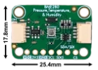 The BME280 Breakout Board features the Bosch BME280 integrated environmental sensor - a combined pressure, humdity, and temperature sensor designed for mobile and wearable applications. Featuring three different power modes, the BME280 provides excellent performance while keeping power requirements low. Despite it's intent in mobile applications, the BME280 is also widely used in weather stations, IoT applications, and indoor climate control systems.